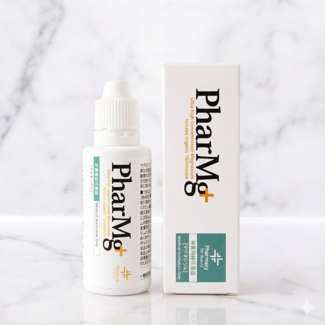 1. 医療現場の声から生まれた「高濃度・液体」タイプ 一般的な固形のサプリメント(酸化マグネシウム等)は、実は吸収されにくいのが難点でした。PharMg+は、時間をかけてイオン化した「完全天然・リキッド(液体)」タイプ。水や飲み物に数滴垂らすだけで、身体にスッと染み渡ります。