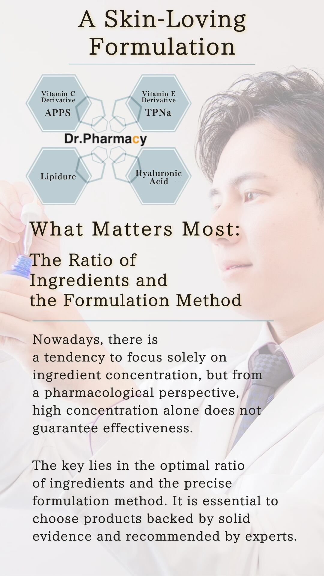 Dr.Pharmacy is an original skincare brand developed by the Beauty Pharmacist Association. Its core philosophy is rooted in evidence-based cosmeceuticals, combining carefully selected ingredients in optimal balance for maximum effectiveness. Driven by the mission to address skin concerns with serious dedication and deliver visible results, Dr.Pharmacy focuses on creating products backed by solid scientific evidence. The brand is specifically designed for sensitive and yuragi skin, which is prone to age- and environment-related fluctuations. Its proven effectiveness and safety have earned strong support from beauty clinics and experts alike. Dr.Pharmacy evolves everyday skincare into genuine care, providing confidence and radiance to everyone struggling with skin concerns.